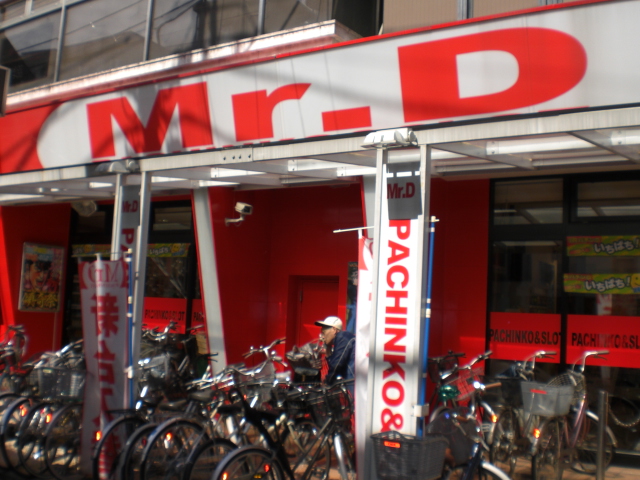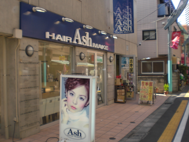 もうちょっと歩きますと右側にパチンコ屋さんです。左側にはASHという美容院が見えてきます。