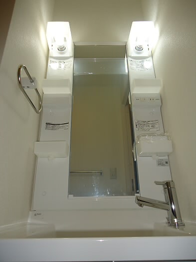 右の扉を開けると 独立洗面台 と トイレ (ウォシュレット付) がございます。