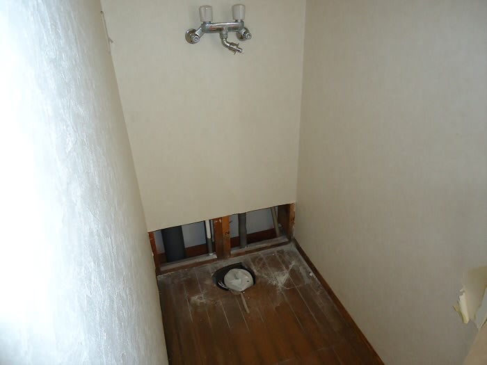 本来あるはずのキッチンや独立洗面台ですが、、、このときすでにごっそり取り除かれていました