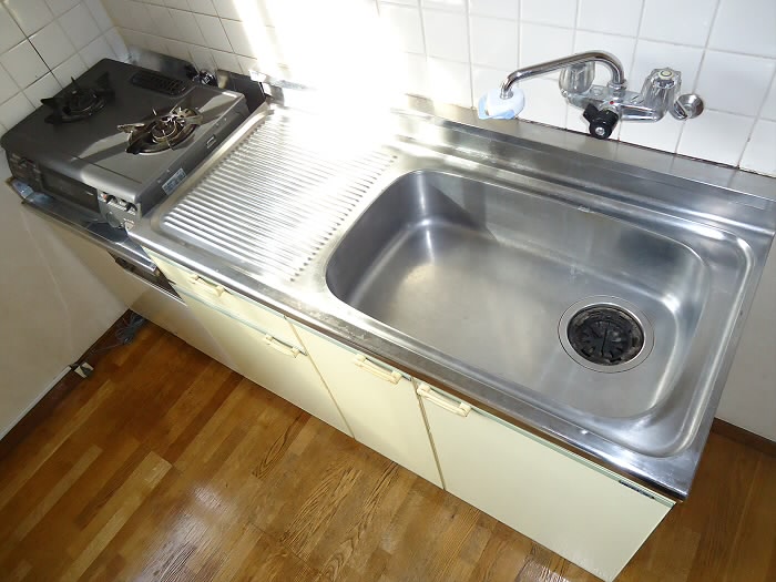 キッチン部分には 2口(グリル付)ガスコンロ がついててラッキー(=^・・^=)
