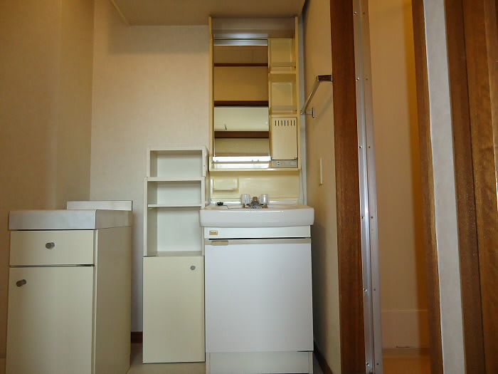 脱衣所には 独立洗面台 と 室内洗濯機置き場 がございます。